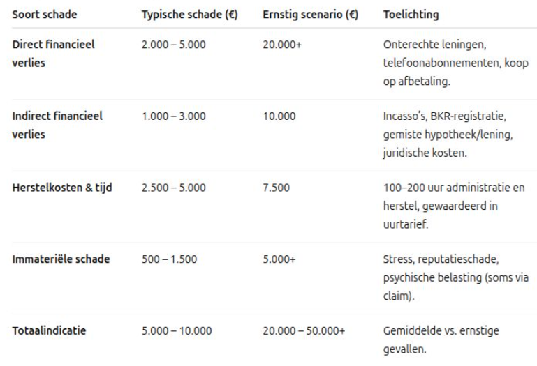 Is het omdat de klanten zich niet realiseren wat het voor ze betekent? Ik ga uit van meer dan VIJFTIG DUIZEND EURO per slachtoffer! Dat is alle directe kosten door misbruik van deze informatie maar met name de kosten om dat allemaal weer recht te trekken, juridisch getouwtrek maar met name ook alle stress die dit oplevert, wanneer er ineens meer schuld op je naam blijkt te staan dan je ooit op de bank kan krijgen.